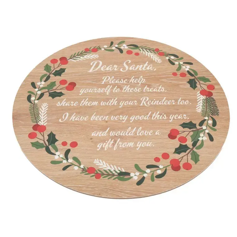 Prepare treats for Santa and his reindeer with this Christmas Eve serving plate. Features "Dear Santa, Please help yourself to these treats" text and a circle of holly berries, making it the perfect piece to add some festive cheer to Christmas Eve traditions. Wipe with a clean, dry cloth.