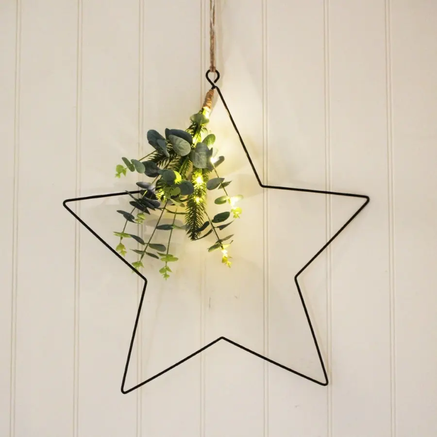 Continue shopping Hanging Eucalyptus LED Star From £ 9.99 Now £ 7.99 Quantity Local delivery only Hanging Eucalyptus LED Star A Beautiful and simple black wire star hanging decoration perfectly decorated with warm glowing LED lights and eucalyptus foliage. Hang around any space in the home for a charming and trending touch to the space From £ 9.99 Now £ 7.99 Quantity Local delivery only Hanging Eucalyptus LED Star From £ 9.99 Now £ 7.99